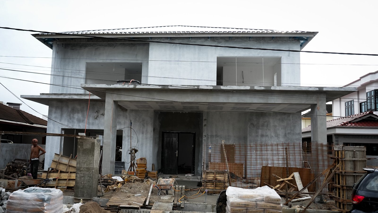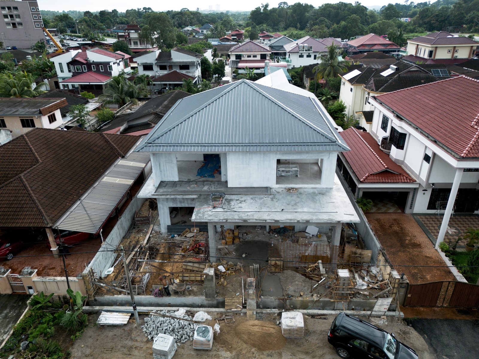 A modern bungalow design located in Nilai, with construction nearing completion.